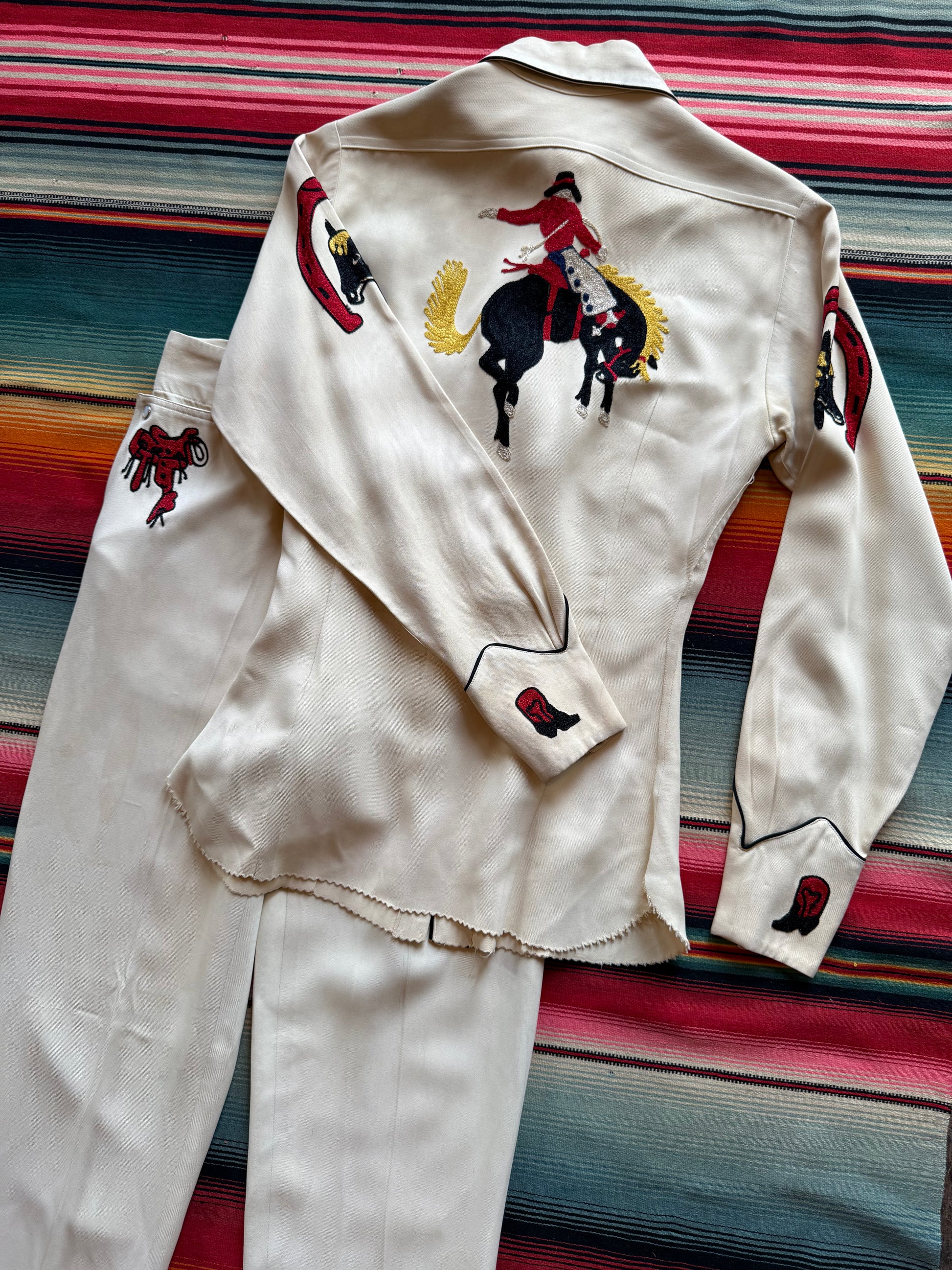 Absolutely incredible embroidered western suit circa 1940s/50s. Tag reads Originals by Missie.