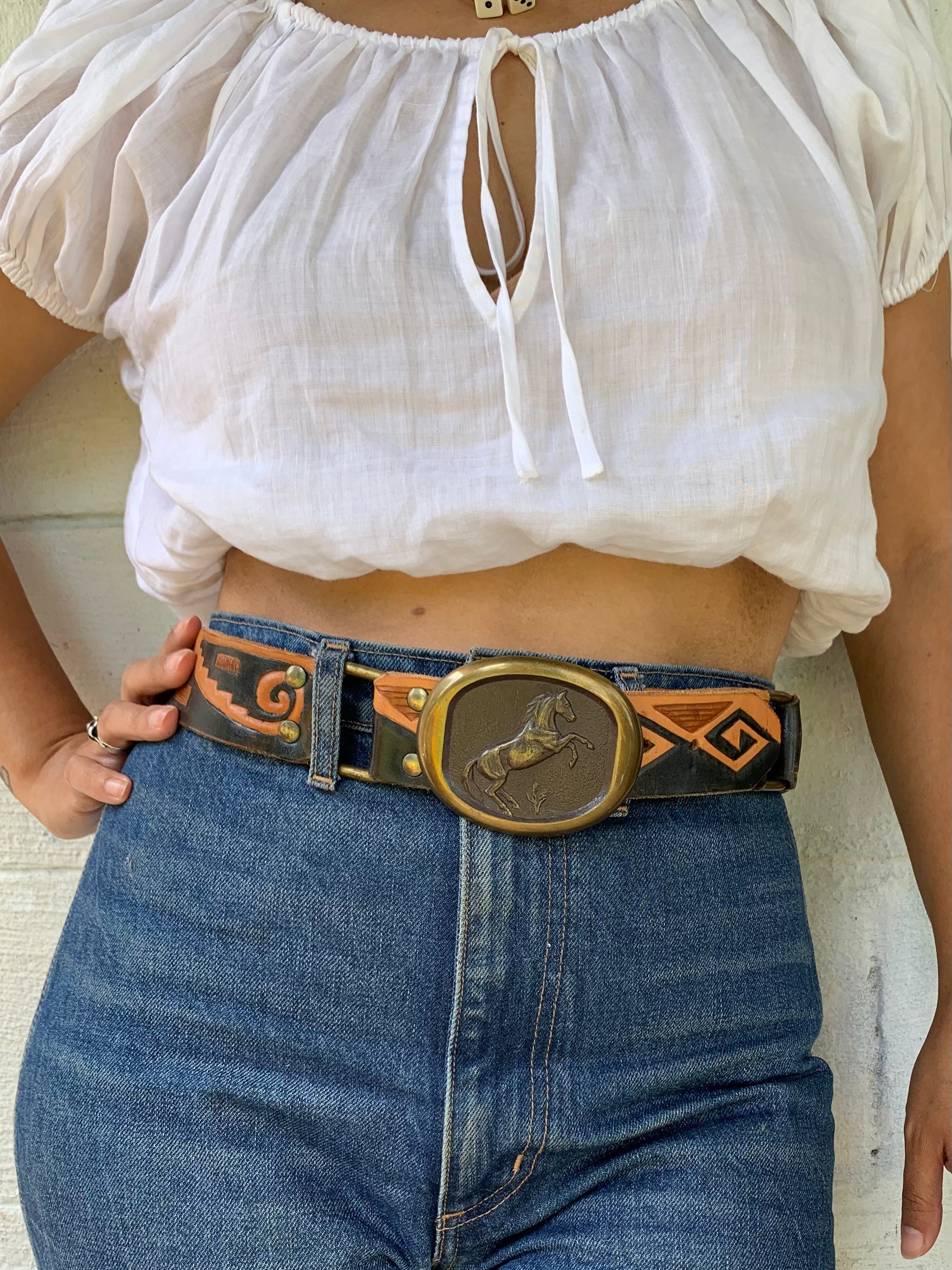 Crafted with attention to detail, this unique belt showcases a captivating fusion of colors and geometric patterns that exude retro charm. The combination of black and brown hues adds versatility, allowing it to effortlessly complement a variety of outfits.